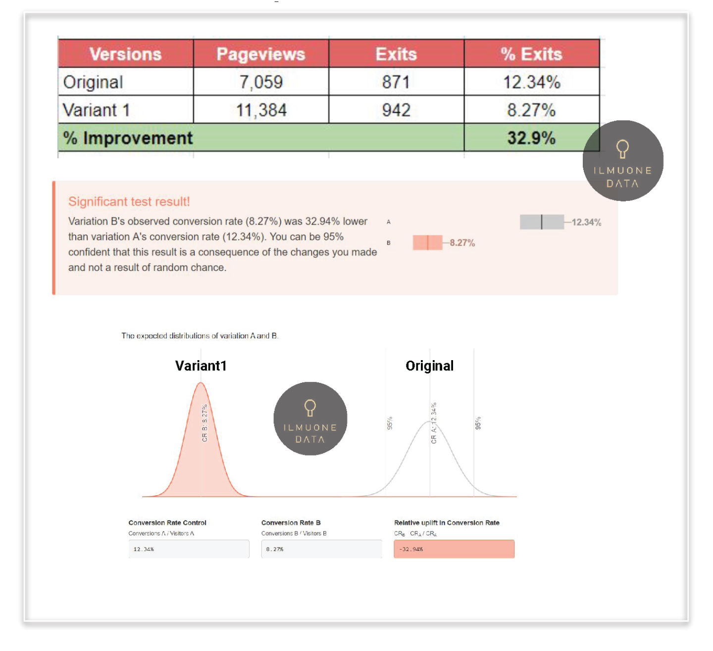 2. Variant 1 has 33% lower %Exits on Cashier Page compared to Original with confidence level of 95%.