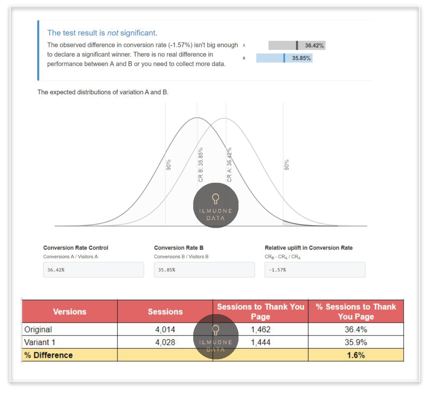 2. The test result shows insignificant result with 95% confidence level even though the % difference is quite big. But due to low sample size, it is too early to make a conclusion.