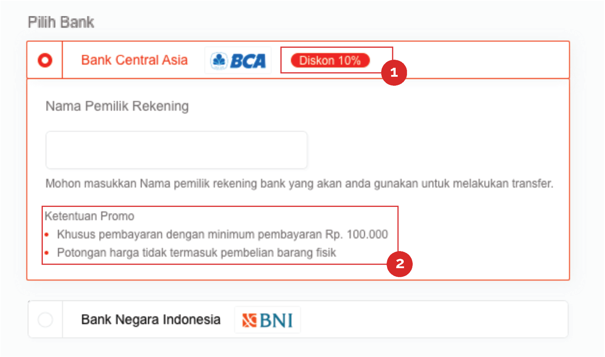 this page same layout with Toko ritel and toko ritel, but Virtual account need to input for a name account holder for data verification.