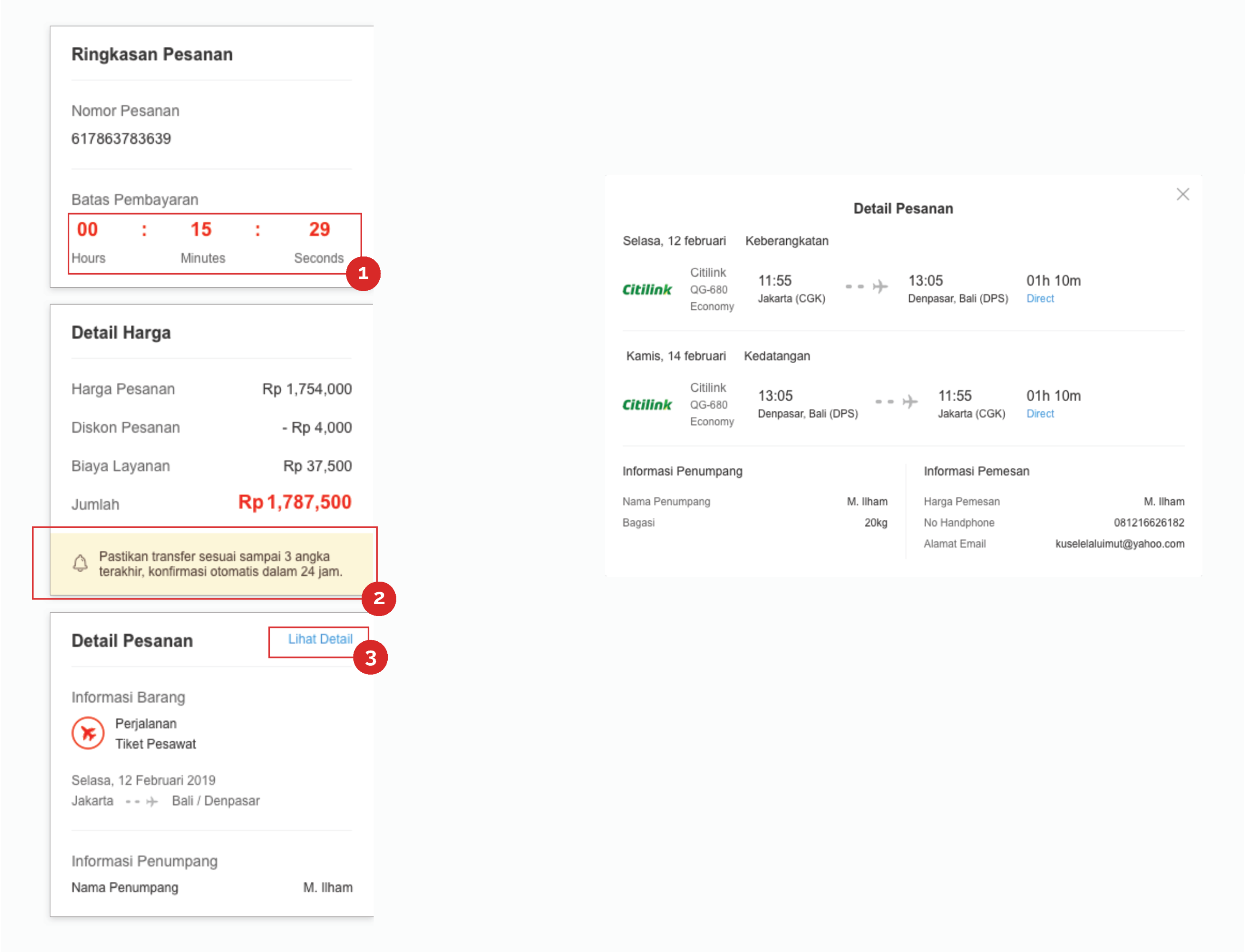 3. “Lihat detail” can be click to show up the pop up information detail order