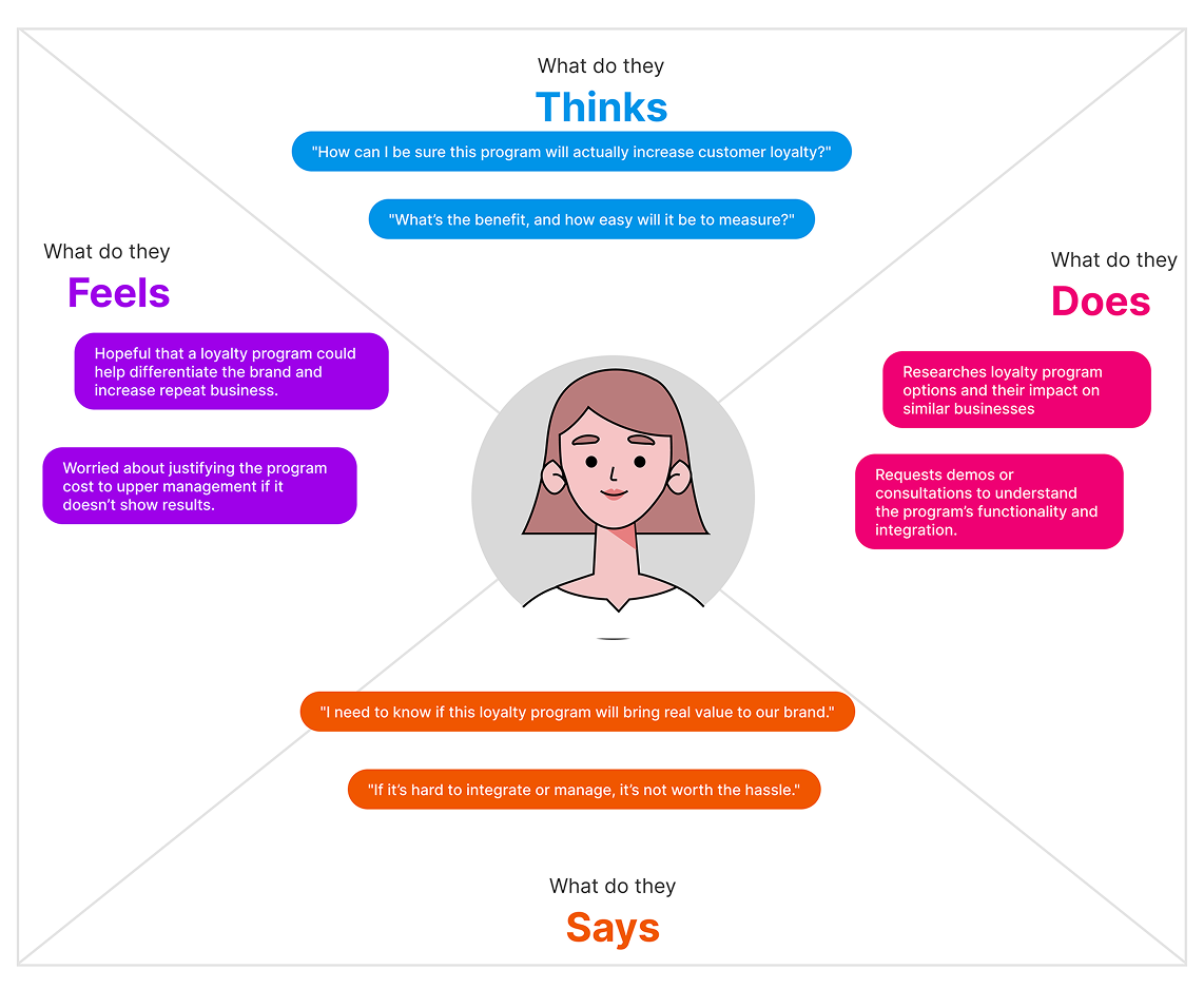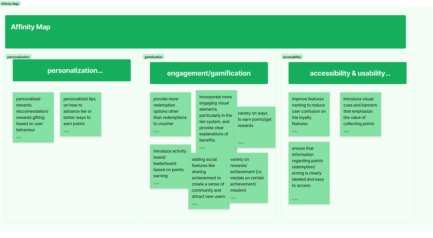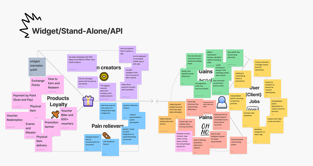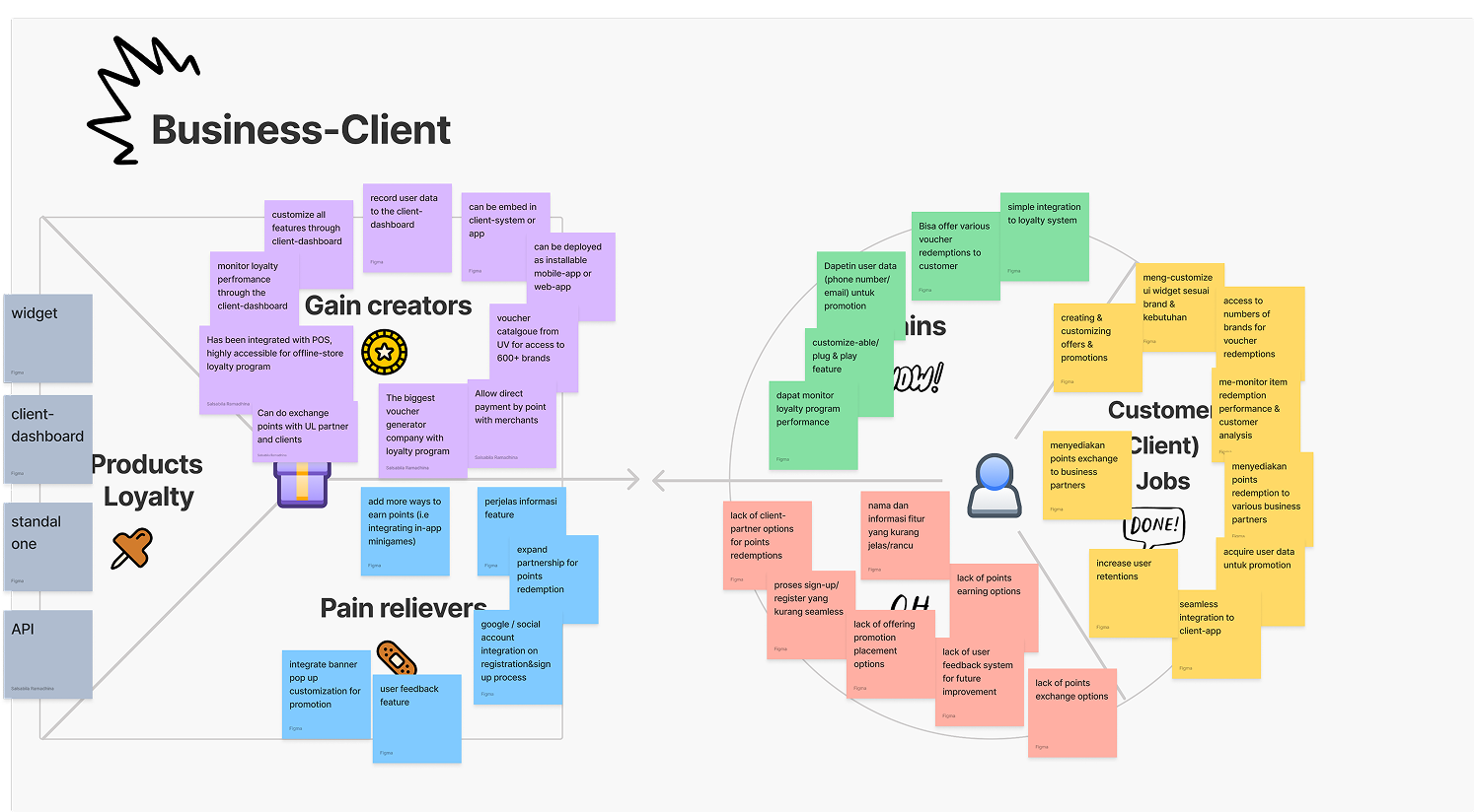 In the discovery phase, we used the Value Proposition Canvas to identify and explore improvement opportunities within the Loyalty Program. This tool helped us map user needs, frustrations, and desired outcomes, highlighting key misalignments between what users value and what the program currently delivers. Through this analysis, we pinpointed specific pain points and under-leveraged gains, giving us clear insights into how we can better align the program’s value with user expectations to boost engagement, satisfaction, and retention.