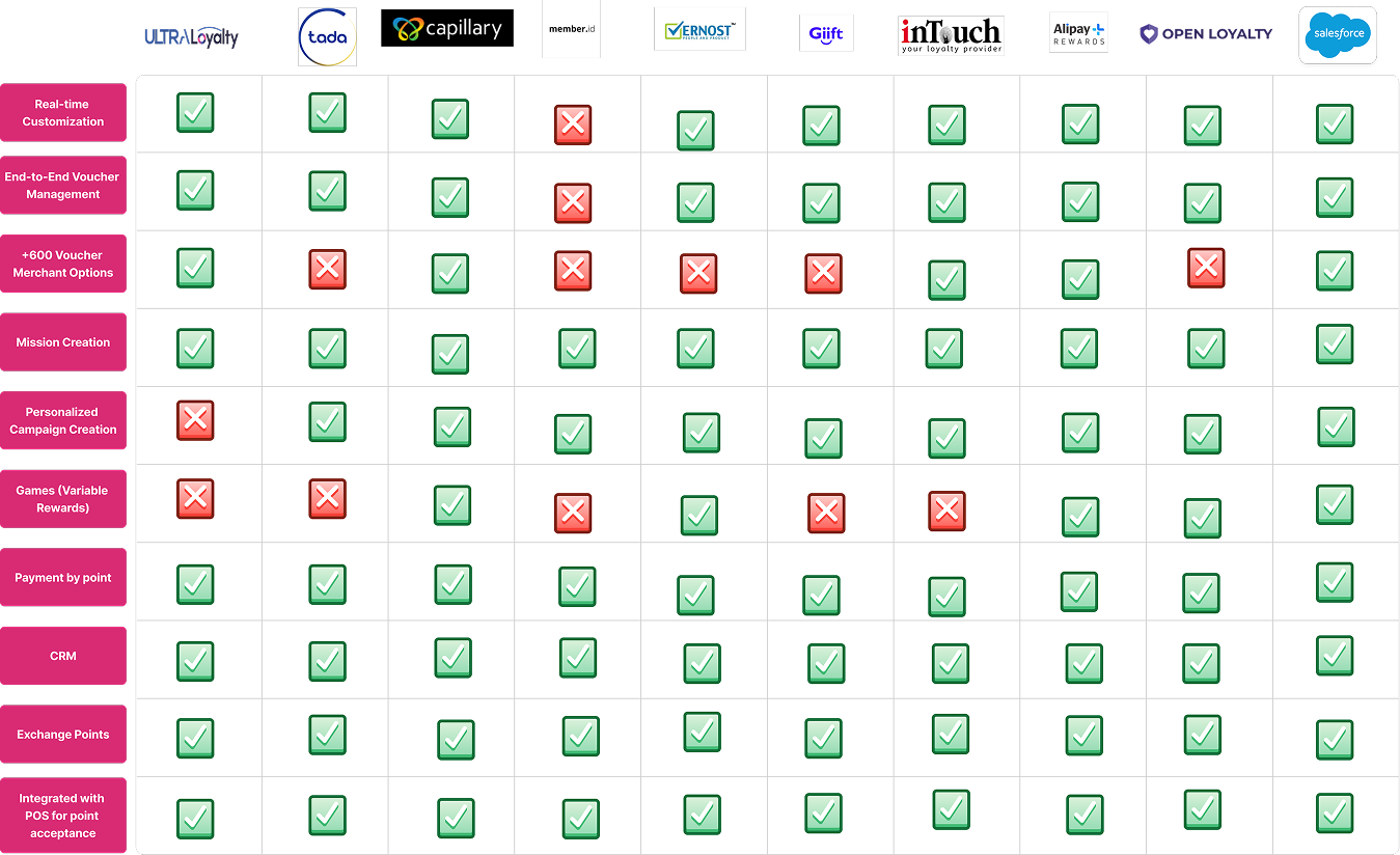 - Ultra Loyalty lags behind in gamification and partnerships compared to players like Capillary and TADA.